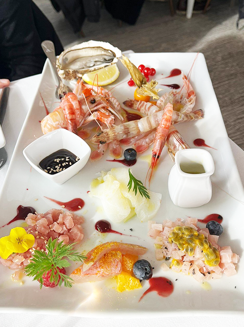 Inoltre, Tirreno offre una varietà di bevande, tra cui i migliori vini, che si abbinano perfettamente alle prelibatezze a base di pesce. Per i più golosi, il menù propone dessert ispirati al mare, come la mousse al cocco con ananas.
